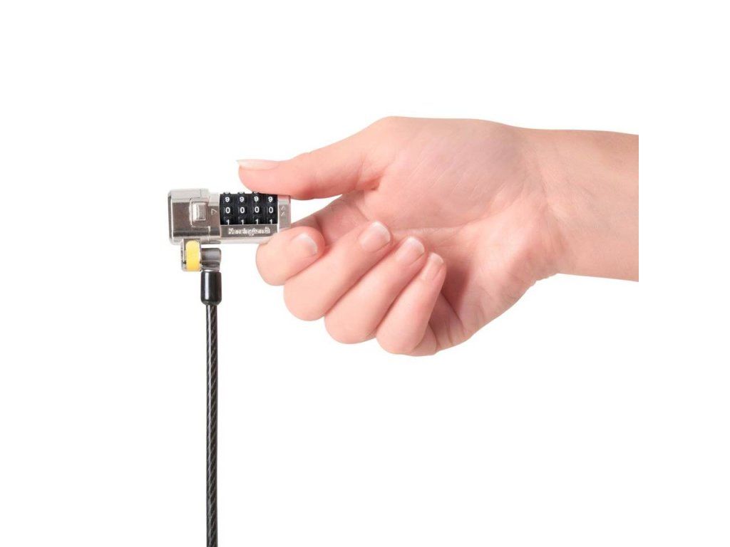 Vlastnosti - 1,8m kabel lze připevnit ke stolu nebo k libovolnému pevnému povrchu. Pomocí čtyř koleček můžete nastavit jednu z 10 000 možných kombinací. - Zámek ClickSafe® umožňuje zabezpečit vaše zařízení pomocí jednoho kroku. Stačí jeho bezpečnostní kotvu zasunout do správného bezpečnostního slotu, kterým jsou vybaveny systémy Dell. - Zámek prošel důkladným testováním podle nejpřísnějších oborových norem, je odolný proti násilnému odemknutí a má dlouhou životnost. - Zámek nabízí 10 000 možných kódových kombinací a uživatel si kód může zvolit podle svého, aby si ho dobře pamatoval. - Kabel z uhlíkové oceli je odolný vůči přestřihnutí a můžete jej ukotvit ke stolu nebo jakékoli pevné konstrukci. - Program Register & Retrieve™ vám umožňuje zjistit zapomenuté kódy. - K zajištění je potřeba jedna ruka a není nutné používat klíč. - Společnost Dell doporučuje používat bezpečnostní zámek za účelem prevence krádeží hardwaru a dat.