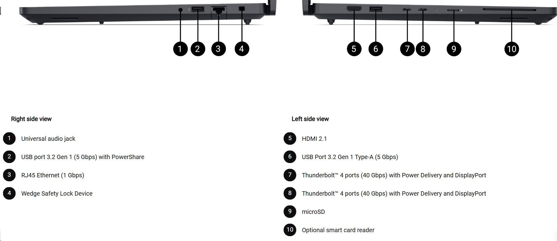 | 6 cell, 96Whr, ExpressCharge™ Capable, standard battery, 130W AC adapter, USB Type C |