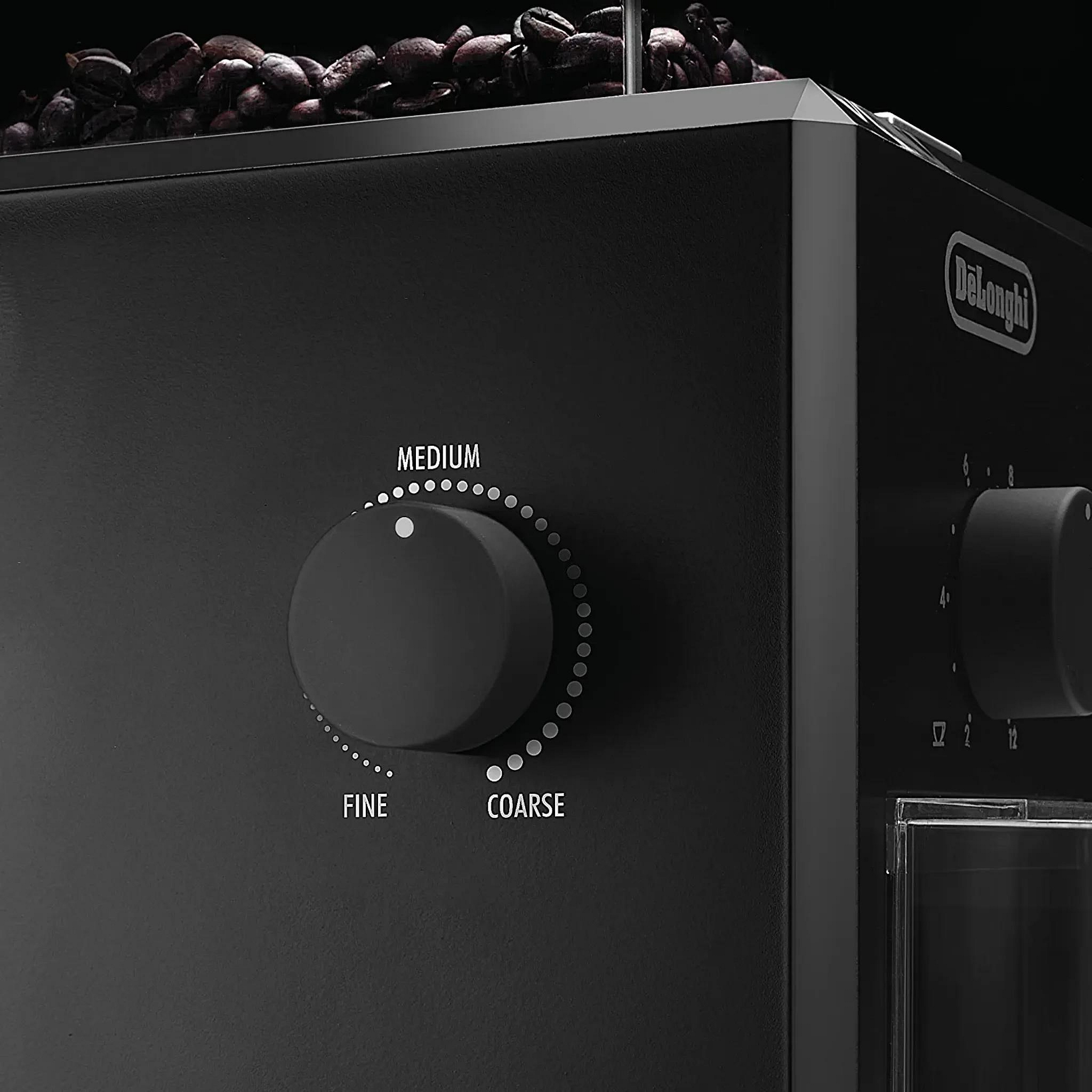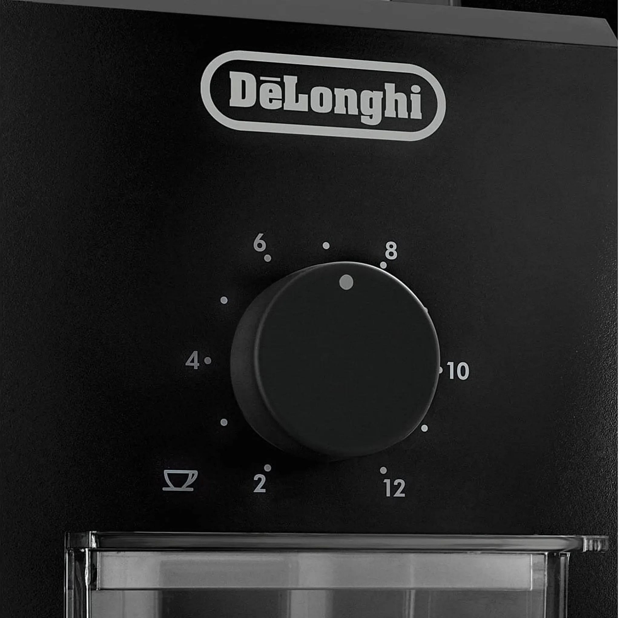 DeLonghi KG79 mlýnek na kávu, 110 W, 16 stupňů nastavení hrubosti, kontrolka, ocelové kameny, bezpečnostní systém, černý