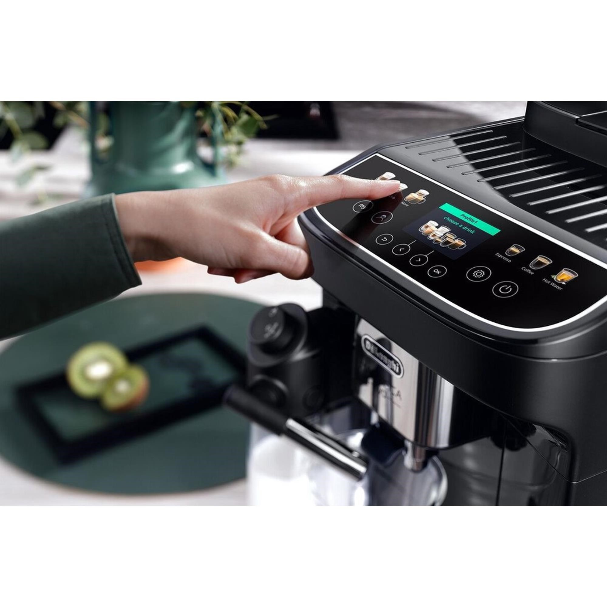 Vďaka veľkému farebnému displeju s uhlopriečkou 2,4” je používanie kávovaru jednoduché a intuitívne. Farebné dotykové ikony nápojov na ovládacom paneli vám uľahčia výber vašej obľúbenej kávy, zatiaľ čo podsvietené navigačné tlačidlá vám umožnia ľahko preskúmať všetky nápoje a upraviť si ich podľa svojich predstáv.