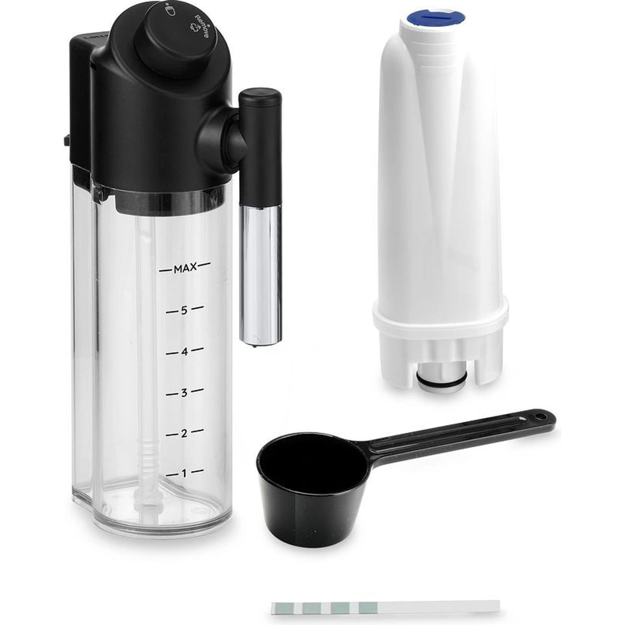 | Funkcie údržby a čistenia | Automatické čistenie mliečnych okruhov, Automatické preplachovanie, Kontrola výmeny vodného filtra, Nastaviteľná tvrdosť vody, Režim úspory energie, Signalizácia potreby odvápňovania / čistenia |
