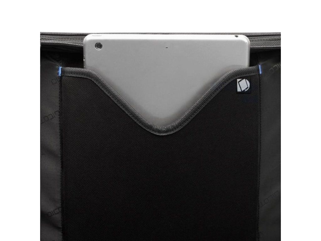 • Uzamykateľná a polstrovaná priehradka na notebook so systémom Fitall a protišmykovou technológiou