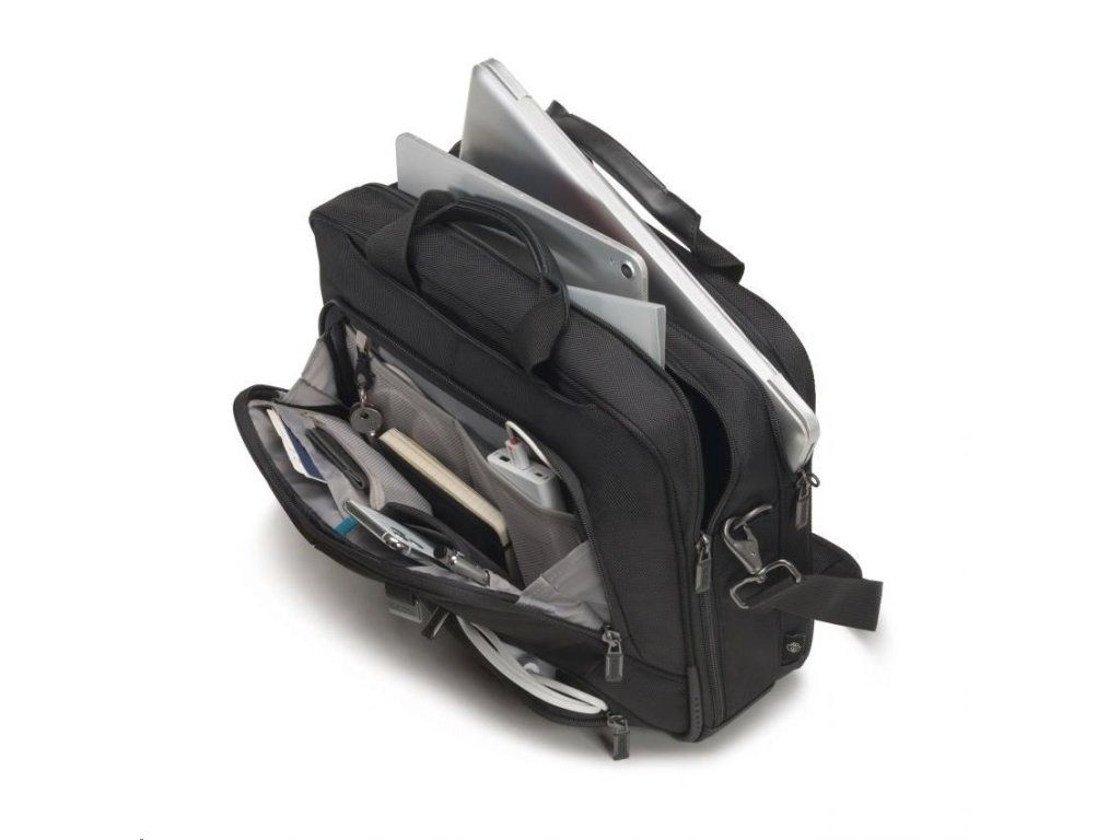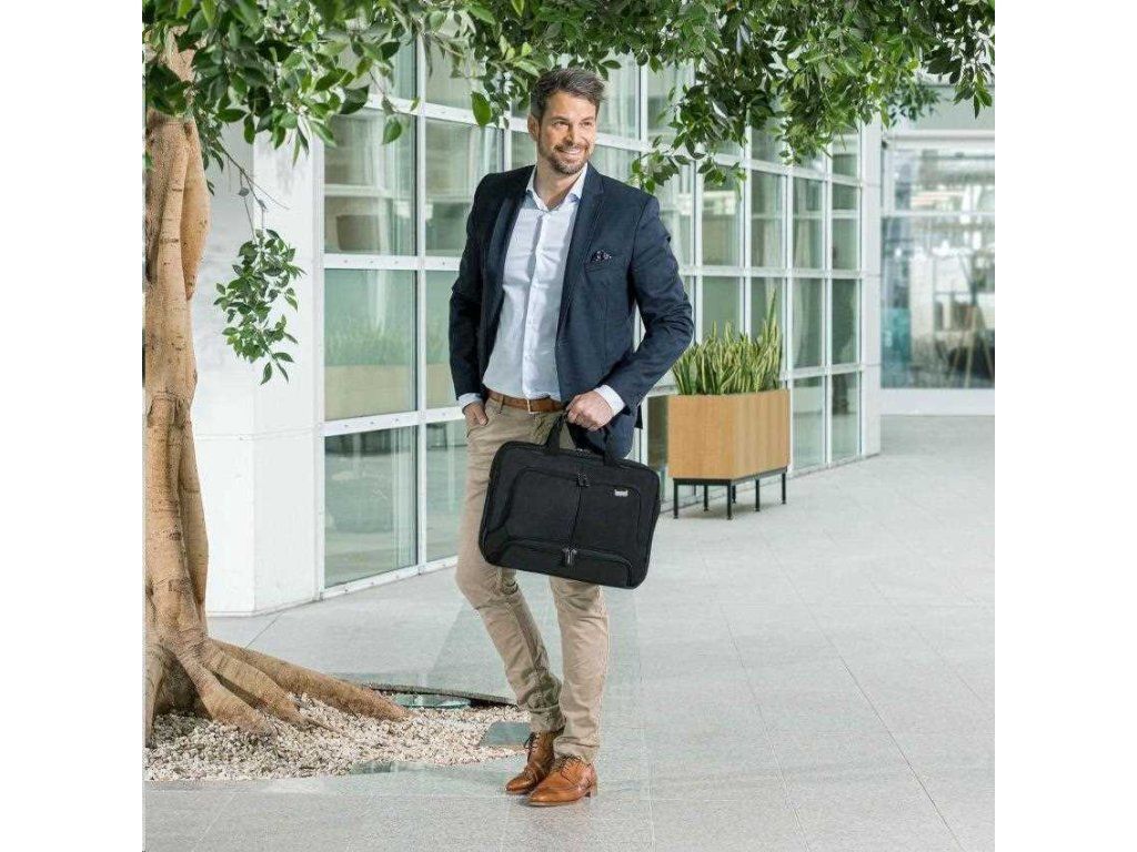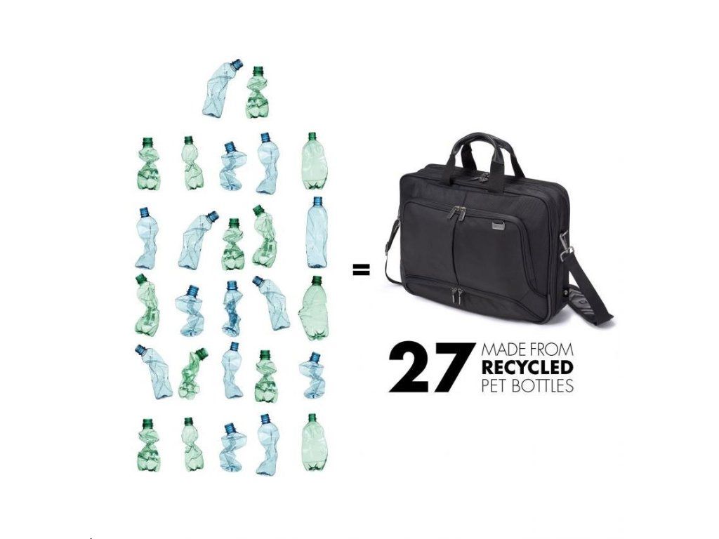 Cestujte "1. triedou" so zariadením Eco Top Traveller PRO. Taška toploader vás spoľahlivo sprevádza všade a spĺňa najvyššie štandardy kvality, funkčnosti a ochrany: vďaka pozornosti venovanej detailom je táto taška DICOTA jedným z vašich najspoľahlivejších obchodných partnerov! Oddeľovacia stena systému fitall v priehradke na notebook je chránená cez notebook a automaticky sa prispôsobí veľkosti od 15 do 17.3". Perforovaný, a teda ľahký penový materiál EVA v uzamykateľnom priestore na notebook dokonale chráni okraje vášho zariadenia. Povrchová úprava s protišmykovou technológiou zaisťuje dokonalé uchopenie notebooku v priehradke. Vynikajúca ochrana pre váš tablet do 12.9" vďaka priehradke v tvare EVA s mimoriadne mäkkou vnútornou podšívkou Nylex. Veľkorysý úložný priestor na dokumenty. Predné vrecko s príveskom na kľúče a vkladacími vreckami umožňuje organizovať osobné vybavenie a poskytuje priestor na ďalšie mobilné príslušenstvo. Ďalšie vrecko na nabíjačku a káble. Taška je ľahká a pohodlná do ruky vďaka kvalitným rukovätiam z pravej kože. Popruh na vozík možno použiť aj ako ďalšiu priehradku na dokumenty. Dno tašky je vyrobené z nepremokavého materiálu. Puzdro Eco Top Traveller PRO je preto pre vás ideálne, ak ste stále na cestách a chcete podporiť recykláciu PET fliaš ekologickým puzdrom.