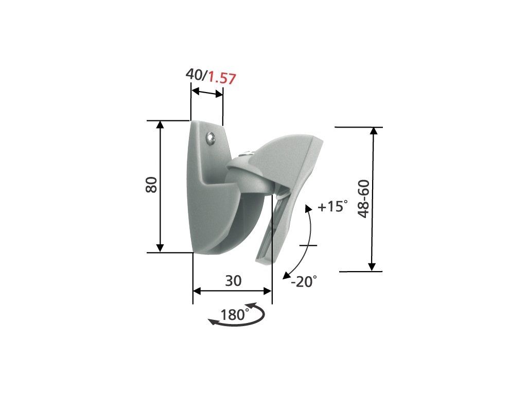 Nástěnný držák pro menší reprosoustavy * ideální pro malé efektové repro nebo menší HiFi repro do 5 kg * možnost natočení do stran a náklonu * snadný způsob uchycení * balení obsahuje 1 pár - 2 ksSpecifikace výrobku nosnost 5 kg náklon +15° -20° natáčení 180° materiál plast barva černá