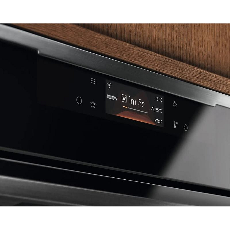 131 Variety of pre-set cooking programmes 'Assist', 3 obľúbené programy, 31 Languages/Text display, akustický signál, ovládanie aplikácií, automatické vypnutie (len rúry), nastaviteľná hlasitosť zvukového upozornenia, kontrola výsledku/predĺženie času (Finish Assist podľa zostávajúceho 10% trvania), Child lock (in off mode), Clock style in standby (2 versions), konektivita, čas varenia, čas varenia s odhadovaným koncom, stopky, Delayed start (Time delay), demo program s kódovaním, priamy prístup k funkciám mikrovlnky, nastavenie jasu displeja, Display Full colour TFT touch 95x35mm, elektronická regulácia teploty, Electronical door switch, rýchle predohriatie s výberom možností, senzor pokrmu, automatické vypnutie senzoru pokrmu, ukazovateľ teploty senzoru pokrmu, Food sensor end action adjustable, senzor pokrmu s odhadom času, Function lock (in running mode), tóny tlačidiel a tóny alarmu a chýb - aktivácia / deaktivácia (okrem ZAP/VYP), hlavný vypínač, denná pamäť 3 dni späť, minútka, Microwave Power level proposal, Oven light on/off selectable (menu direct access button), ukazovateľ skutočnej teploty (°C) , indikácia zvyškového tepla (°C), využitie zvyškového tepla, servisné informácie, vypnutie času dňa v stave vypnutia, odporučaná teplota, denný čas