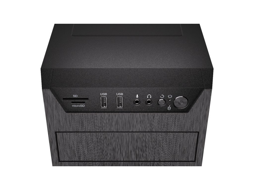 Přední vstupy/výstupy: *2× USB-A 3.2 Gen. 1 *1× headphones (minijack 3.5 mm) *1× microphone (minijack 3.5 mm) *1× SD/microSD card reader *1× POWER button *1× RESET button