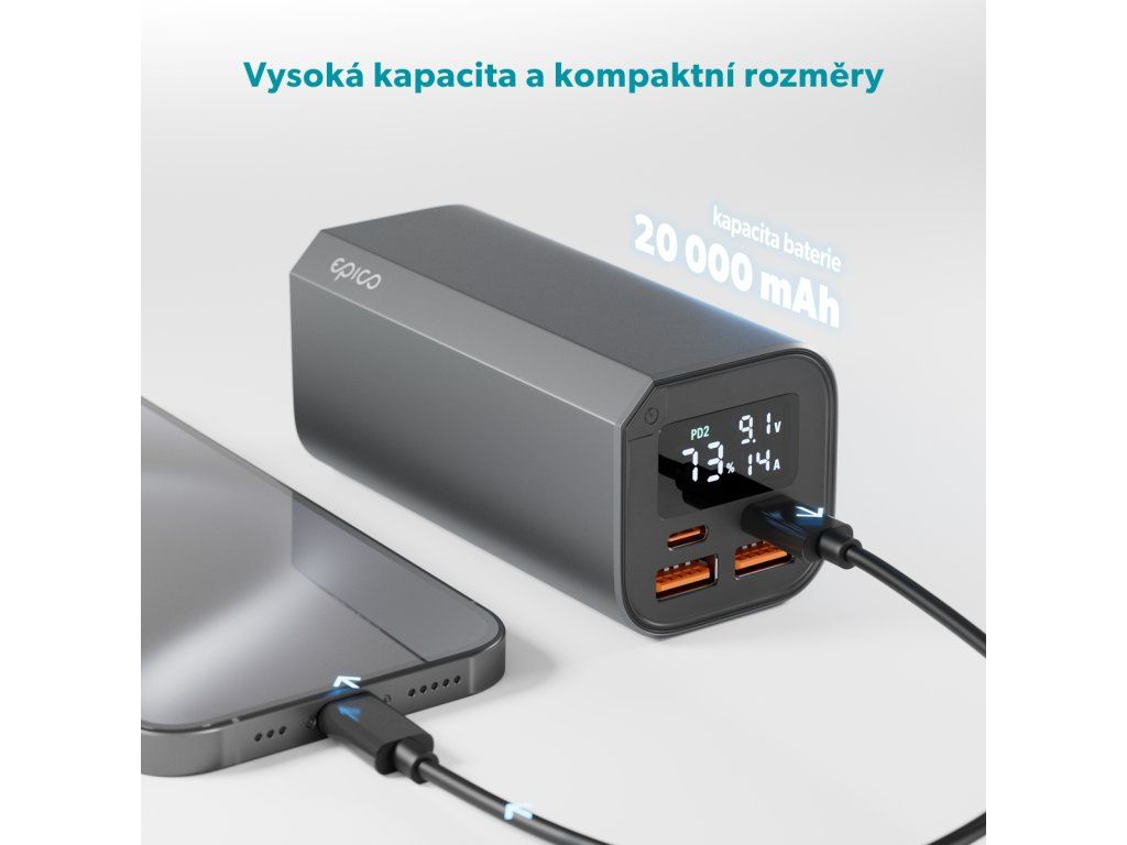 Epico Alu Power Bank PD 100W - 20 000mAh - šedá