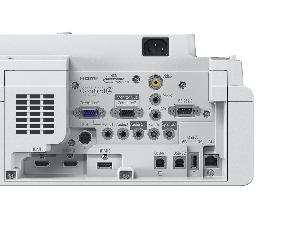 Rozhraní: USB 2.0-A (2x), RS-232C, Ethernetové rozhraní (100 Base-TX / 10 Base-T), bezdrátová síť LAN IEEE 802.11a/b/g/n/ac (WiFi 5), VGA vstup (2x), VGA výstup, HDMI vstup (3x), kompozitní vstup, Miracast, audiovýstup, stereofonní konektor mini-jack, audiovstup (3x), USB 2.0 typ B (pouze servis) (2x), Wi-Fi Direct, vstup pro mikrofon