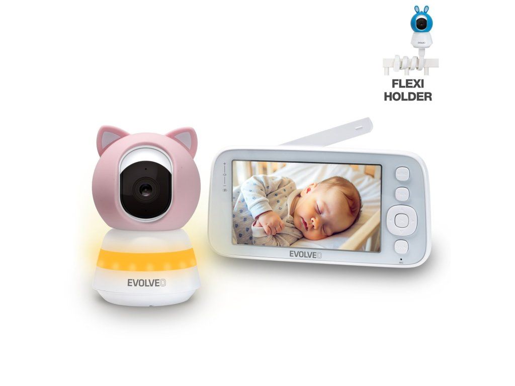 EVOLVEO Baby Monitor N5 - Set videoopatrovateľky s 360 ° dohľadom, obojsmernou komunikáciou a uspávankami,