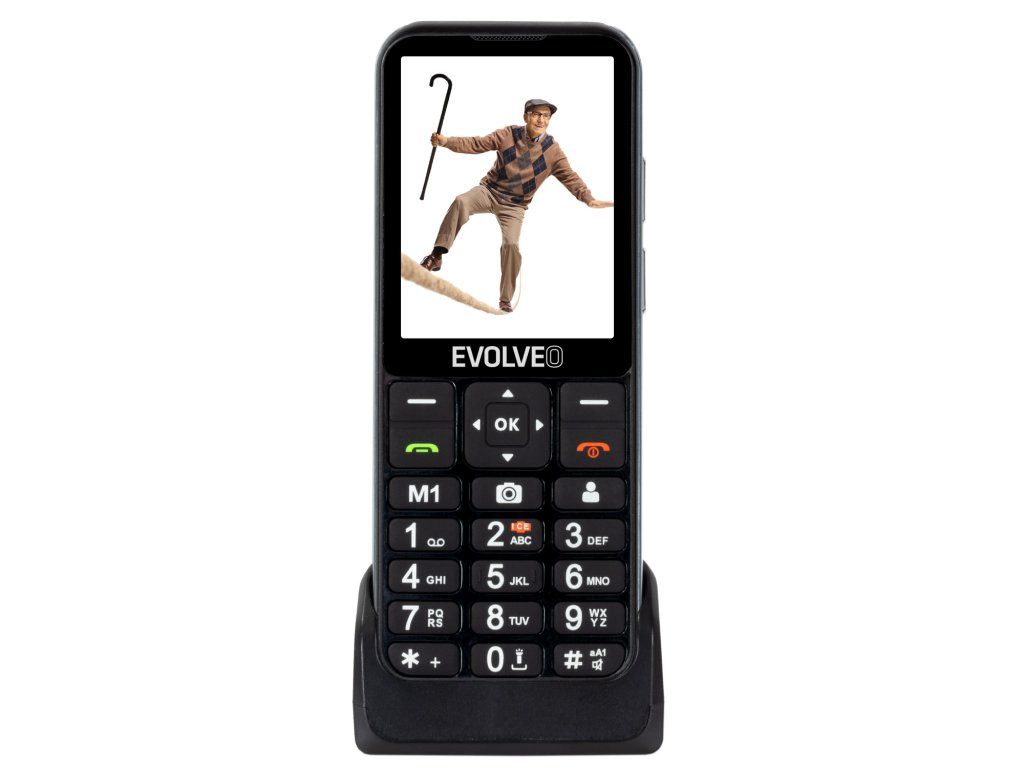 EVOLVEO EasyPhone LT, mobilný telefón pre seniorov s nabíjacím stojanom (čierna farba)