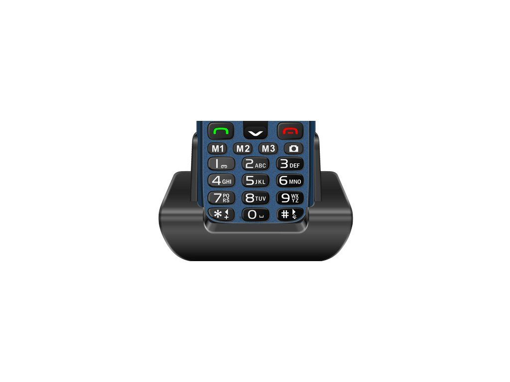 • Mobilní telefon s velkými tlačítky vhodný pro seniory nebo pro děti • Jednoduché ovládání a ergonomický design • Velký barevný 2.3'' TFT displej • Dobíjecí port USB-C (Type C) • 0,3 Mpx fotoaparát • Kapacita pro uložení kontaktů: 250 • Kapacita pro SMS zprávy: 100 • Fotokontakty a kontakty rychlé volby pro snadné vytáčení blízkých osob • Počet předvoleb pro fotokontakty: 250 • Počet předvoleb pro rychlou volbu: 9 • SOS tlačítko s výrazným barevným odlišením pro SOS volání v případě nouze • Počet předvoleb SOS kontaktů: 6 • Nezávislé FM rádio funkční i pro vestavěný reproduktor • Automatické ladění rádia • Vyhrazená tlačítka pro 3 oblíbené kontakty (M1-M3), fotoaparát a změnu uživatelského profilu • Hlasitý výkonný reproduktor pro poslech FM rádia a vyzvánění • Počet melodií pro vyzvánění: 4 + vlastní • Dobíjecí kolébka pro snadné nabíjení • Uživatelsky vyměnitelná 1000 mAh Li-Ion baterie (součást dodávky) • Výdrž v pohotovostním režimu až 8 dnů • Nabíjení baterie: 3 hod. • Rozlišení displeje 320 x 240 px • Velká oddělená tlačítka klávesnice pro snadné ovládání • Bílé podsvícení tlačítek s možností úplného vypnutí • Silná svítilna s možností rozsvícení i při uzamknuté obrazovce • Posuvné tlačítko svítilny • Tlačítka pro ovládání hlasitosti• LED indikace: 1) Červená LED indikace značí nízký stav baterie nebo nabíjení baterie 2 )Modrá LED indikace značí zmeškaný hovor nebo nepřečtenou zprávu • Pokrytí pásem GSM 850/900/1 800/1 900 MHz • Podpora SMS a MMS zpráv • Podpora SIM Toolkit • Bluetooth verze 3.0