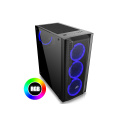 Hení skříň s 4x RGB ventilátory Herní ATX midi tower s instalovanými 4x RGB rainbow 120 mm ventilátory, které se ovládájí pomocí LED tlačítka na horní straně ovládacího panelu. Čelní mřížka přes celý přední kryt zajišťuje efektivní proudění vzduch. Levá strana skříně obsahuje bočnici z tvrzeného skla. Skříň je určená pro základní desky podporující platformu Intel i AMD. Mimo formátu ATX je kompatibilní i s formátem Micro ATXa Mini ITX. Napájecí zdroj se umísťuje do dolní části skříně. Spodní mřížka je osazena vysouvacím prachovým filtrem, horní prachový filter je uchycený magnety a je odnímatelný. Základní specifikace: • 4x RGB Rainbow Ring 120mm ventilátory • 2x 3.5'' interní • 2x 2,5 '' SSD • maximální výška CPU chladiče: 162mm • maximální délka VGA karty: 350mm • kryt horních ventilátorů odnímatelný, uchycený na magnety • výsuvný spodní prachový filtr pod zdrojem • kompatibilní základní desky: ATX, Micto-ATX, Mini-ITX Přední I/O Porty a ovládání: 1xUSB 3.0 2xUSB 2.0 1xHD audio 1x LED switch button Ventilátory: 3x 120mm přední ventilátory - instalované 1x 120mm zadní ventilátor - instalovaný 2x 120mm horní ventilátory - nejsou součástí balení Rozměry: H 410 x Š 202 x D 455mm