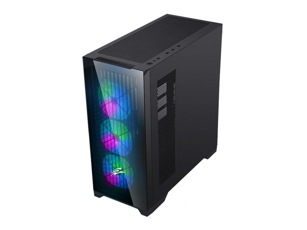 • Podpora ATX, eATX, mATX, mITX • Bočnice a čelní panel z temperovaného skla • 4x ARGB ventilátor (120 mm) • QuintFlow technologie • CPU chladič max. výška 164 mm • VGA karta max. délka 390 mm • 1x USB 3.2 Gen 1 / 2x USB 2.0 /1x HD Audio / 1x mikrofon • 2x 3,5'' HDD / 3x 2,5 '' SSD