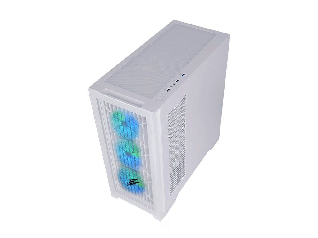 EVOLVEO 12FMW/12FSW ARGB 120 mm ventilátory. Pokud zvolíte jako přední panel mřížku, je zaručeno efektivní proudění vzduch. Pro lepší proudění vzduchu je možné doinstalovat do horní části skříně dva ventilátory velikosti 140mm, nebo tři ventilátory velikosti 120mm. Horní část skříně umožnuje i použití vodního chlazení délky 120/240/280 a 360mm. Levá strana PC skříně obsahuje bočnici z tvrzeného skla. Skříň je určená pro základní desky podporující platformu Intel i AMD. Mimo formátu ATX je kompatibilní i s formátem Micro ATXa Mini ITX. Napájecí zdroj se umísťuje do dolní části skříně. Spodní mřížka je osazena vysouvacím prachovým filtrem, horní prachový filtr je uchycený magnety a je odnímatelný. Ventilátory mají 4pin s MOLEX konektory a připojují se vzájemně na sebe bez nutnosti jakéhokoliv řadiče. Ovládání ventilátorů je možné pouze pomocí LED tlačítka na kontrolním panelu skříně.