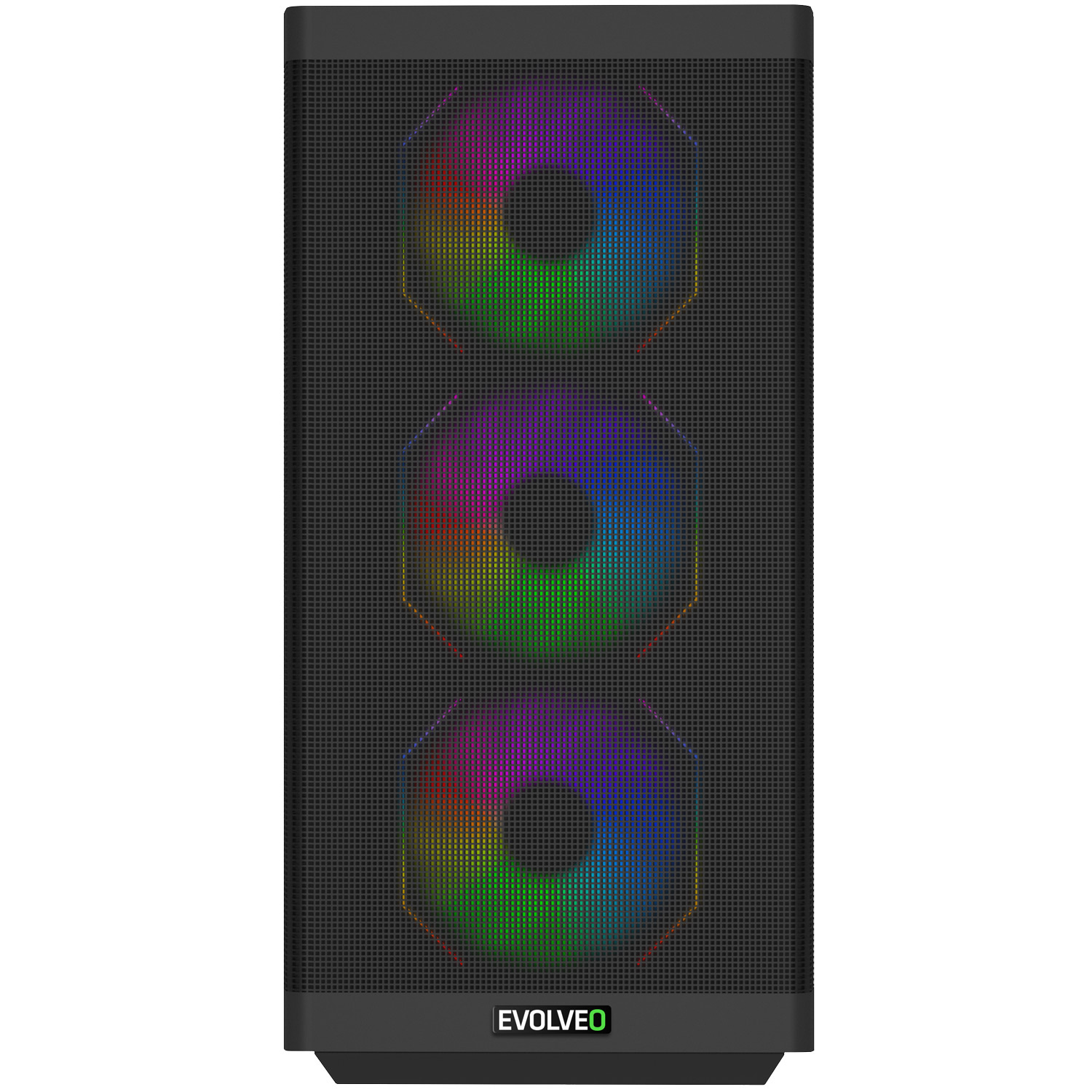 EVOLVEO Scorpio, skříň eATX/ATX, 4x ARGB ventilátor 120mm, boční panel temperované sklo + mřížkovaný přední panel Herní počítačová (e)ATX skříň EVOLVEO Scorpio-BK-4