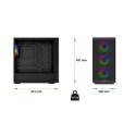 Průhledná odnímatelná bočnice: 1) Vyrobena z vysoce kvalitního tvrzeného bezpečnostního skla (tloušťka 4 mm) 2) Temperované sklo (při rozbití se rozsype na bezpečné drobné kousky bez ostrých střepů) 3) Snadná demontáž a montáž pomocí dvou šroubů • 4x 3,5'' HDD • 5x 2,5 '' SSD • Maximální délka VGA karty: 415 mm • Maximální výška CPU chladiče: 180 mm • Robustní konstrukce (plechy o tloušťce 0,7 mm) • Systém „QuintFlow“ pro optimální průtok vzduchu a přirozené chlazení celé skříně díky pěti vzduchovým proudům přes čelní, horní, spodní, zadní a boční průduchy • Podpora základních desek Intel i AMD • Předinstalované ventilátory ve skříni: 1x ARGB master, 3x ARGB slave • Specifikace předinstalovaných ventilátorů: •