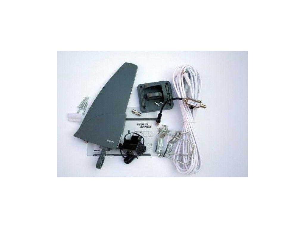 EVOLVEO Shark, aktívna vonkajšia anténa DAB+/DVB-T2, filter LTE,4G,5G