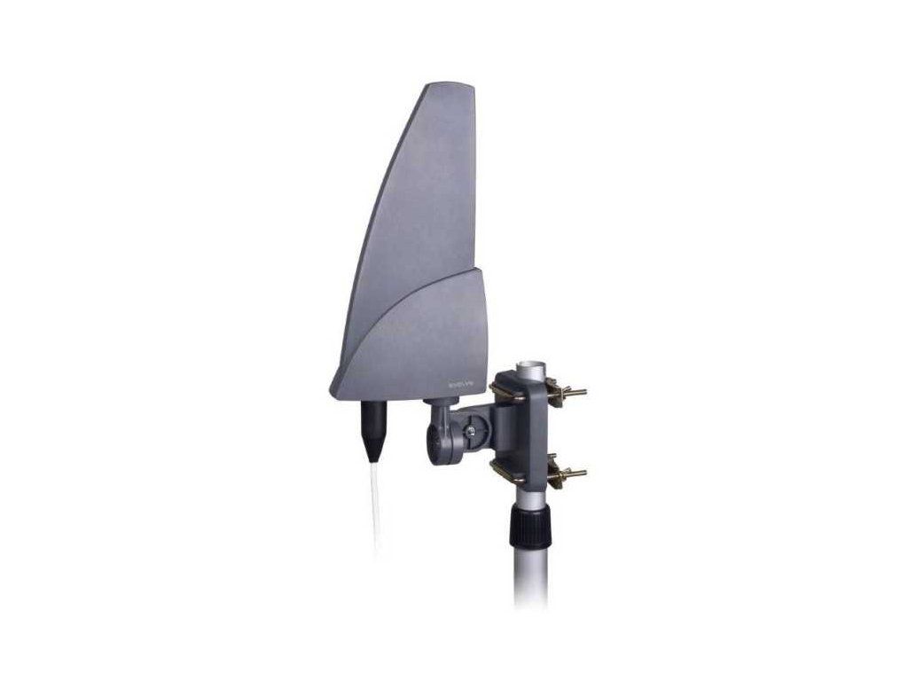 Kvalitní venkovní anténa pro příjem digitální TV. Možnost montáže v horizontální i vertikální poloze. Vestavěný zesilovač s externím napájením pro nejvyšší kvalitu signálu. Anténu lze otáčet v rozsahu 360° pro zajištění nejvhodnější polohy pro příjem. Voděodolný plášť antény nepoškodí ani dlouhodobé vystavení UV záření. Součástí balení je montážní sada pro upevnění antény.