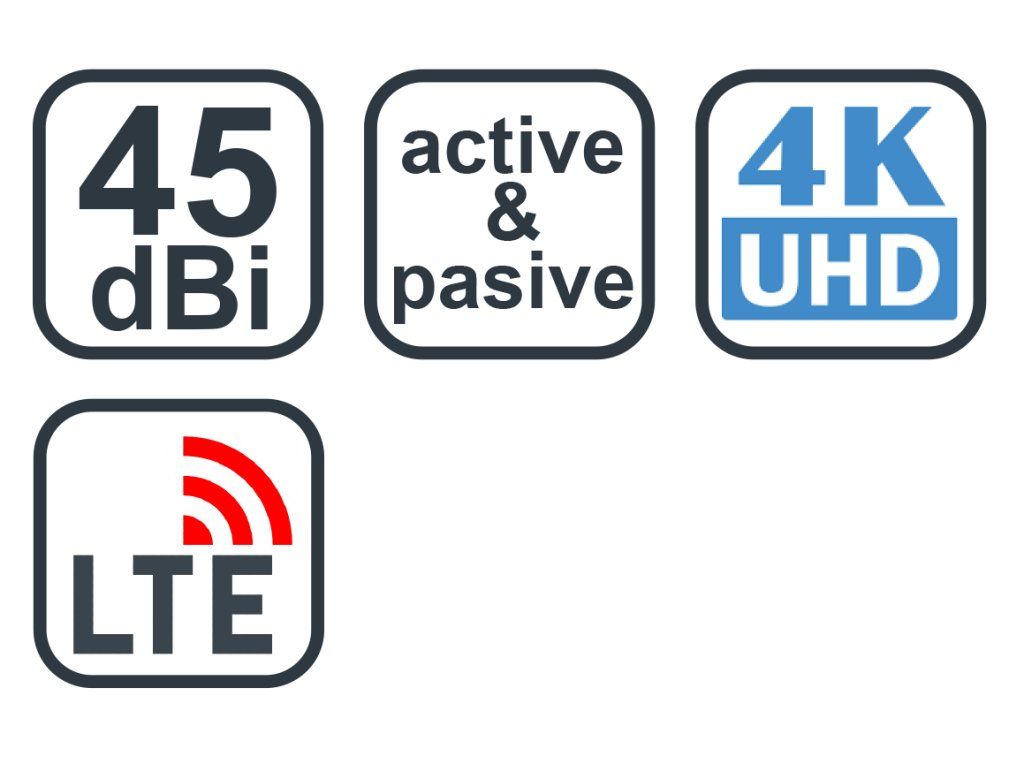 • zisk: 45 dBi • filtr LTE, 4G, 5G • VHF: 87,5-230MHz (FM/DAB+) • UHF: 470-694 MHz (DVB-T2) • napájení AV 220-240V, DC 5V/50mA • konektor IEC male • velikost: 330 x 230 x 2 mmOBSAH BALENÍ: