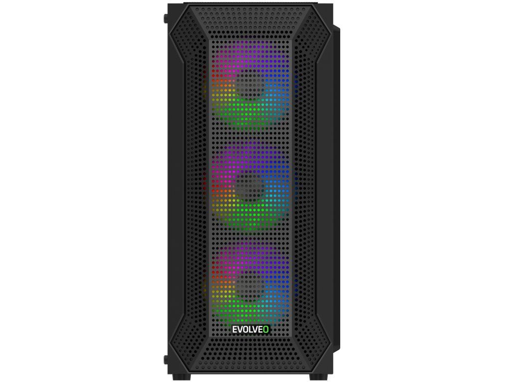 EVOLVEO Xenon, skříň ATX, 4x ARGB ventilátor 120mm, přední panel airflow mesh, černá