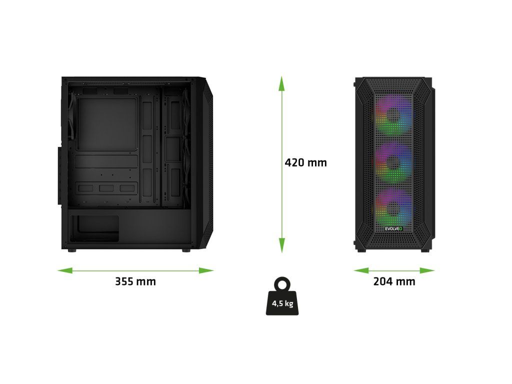 EVOLVEO Xenon, Midi Tower/4x ARGB/mesh+sklo