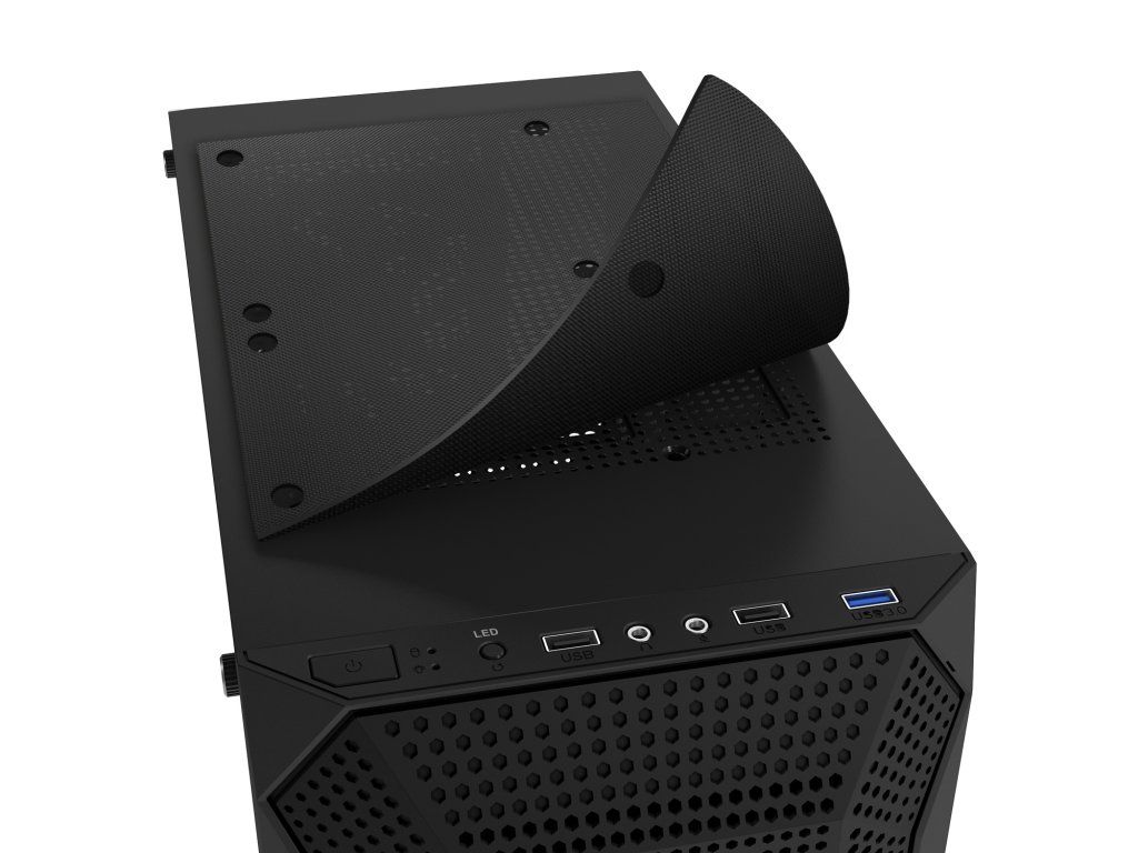 voštinové průduchy – díky nim vzduch postupně chladí všechny důležité součástky a počítač si udržuje teplotu, která umožňuje nerušené hraní. Vzduch proudí skříní, jak je třeba, i díky