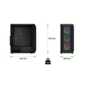 • Midi Tower • ATX, mATX, mITX • Mesh čelní panel s nacvakávacím mechanismem • Bočnice z temperovaného skla • 4x Ventilátory ARGB 120 mm • Dva prachové filtry • VGA max. 330 mm • CPU max. 170 mm • 2x 3,5''HDD, 3x 2,5''SSD • 3x USB, 2x Jack