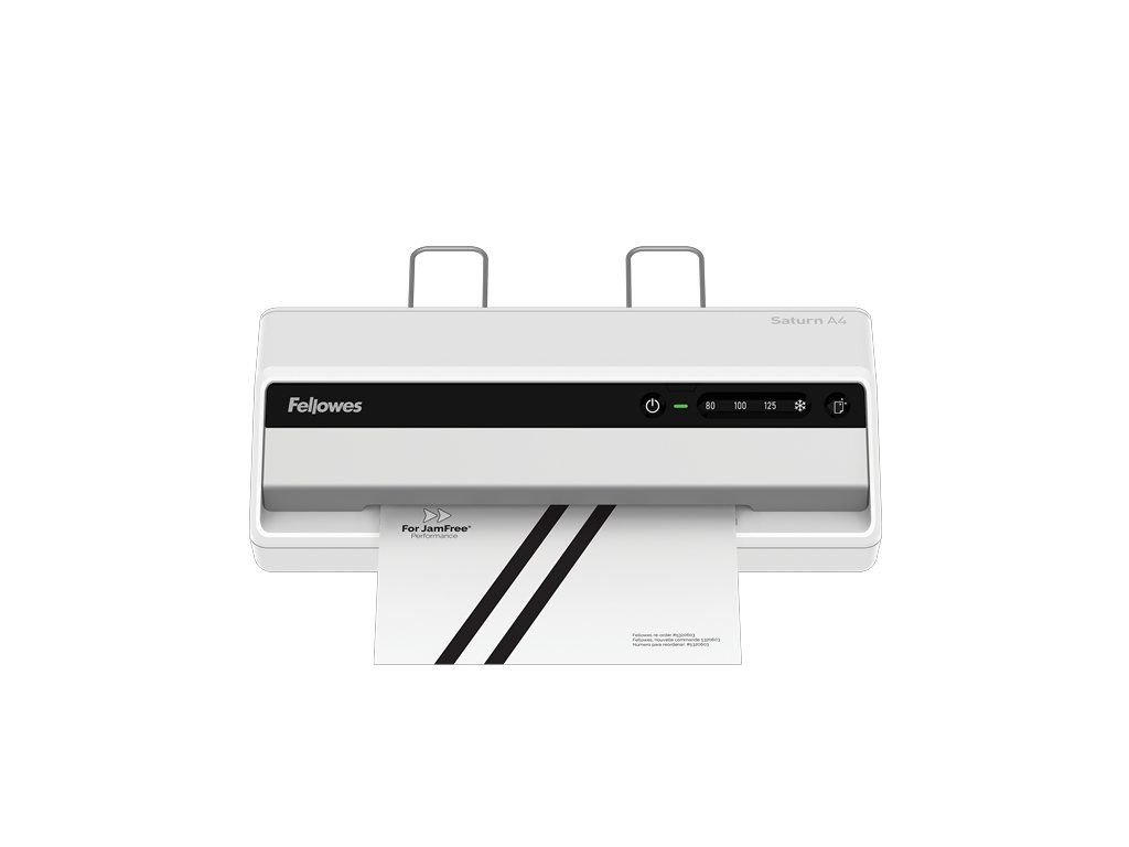 Fellowes laminátor Saturn3i A4 s novým atraktivním designem a inovovaným systémem zrychleného výhřevu. Laminování za cca 1 min od zapnutí. Umožňuje kvalitní laminaci až do formátu A4 v rozsahu 80-125 mic tloušťky laminovacího filmu, včetně laminace fotografií. Je vhodný pro laminaci v kanceláři. Stroj je vybaven unikátním systémem Jam Free, který významně snižuje riziko uvíznutí laminovaného dokumentu uvnitř stroje. Laminátor disponuje systémem pro uvolnění válců a případné zpětné vysunutí laminovaného dokumentu - uvolňovací páčka na zadní části stroje. Prosvětlený LED diodový displej usnadňuje výběr pracovního stavu. 100% JAM FREE - LED indikace chybného podání laminovací fólie, v případě uvíznutí dokumentu použijte uvolňovací páčku InstaHeat – zrychlený výhřev stroje na pracovní teplotu Auto Shut off - automatické vypnutí při nečinnosti, šetří energii, předchází přehřátí Součástí dodávky je startovní sada 10ti laminovacích folií formátu A4 tloušťky 80 mic. PARAMETRY: • Typ laminátoru: stolní • Maximální formát: A4 • Laminovací šířka: 240 mm • Laminovací rychlost: 50 cm/min • Maximální tloušťka laminovací fólie: 125 mic • Doba náběhu do pracovního stavu: 1 min • Zpětný chod: ne • Regulace rychlosti: ano • Regulace teploty: 4 úrovně • Laminace za studena: ano • Maximální tloušťka dokumentu: 0,5 mm • Napájení: 220-240 V • Doporučené zatížení: střední • Počet laminovacích válců: 2 • Rozměry (Š x V x H): 385mm x 117mm x 154mm • Hmotnost: 1.8 kgDodatočné parametre