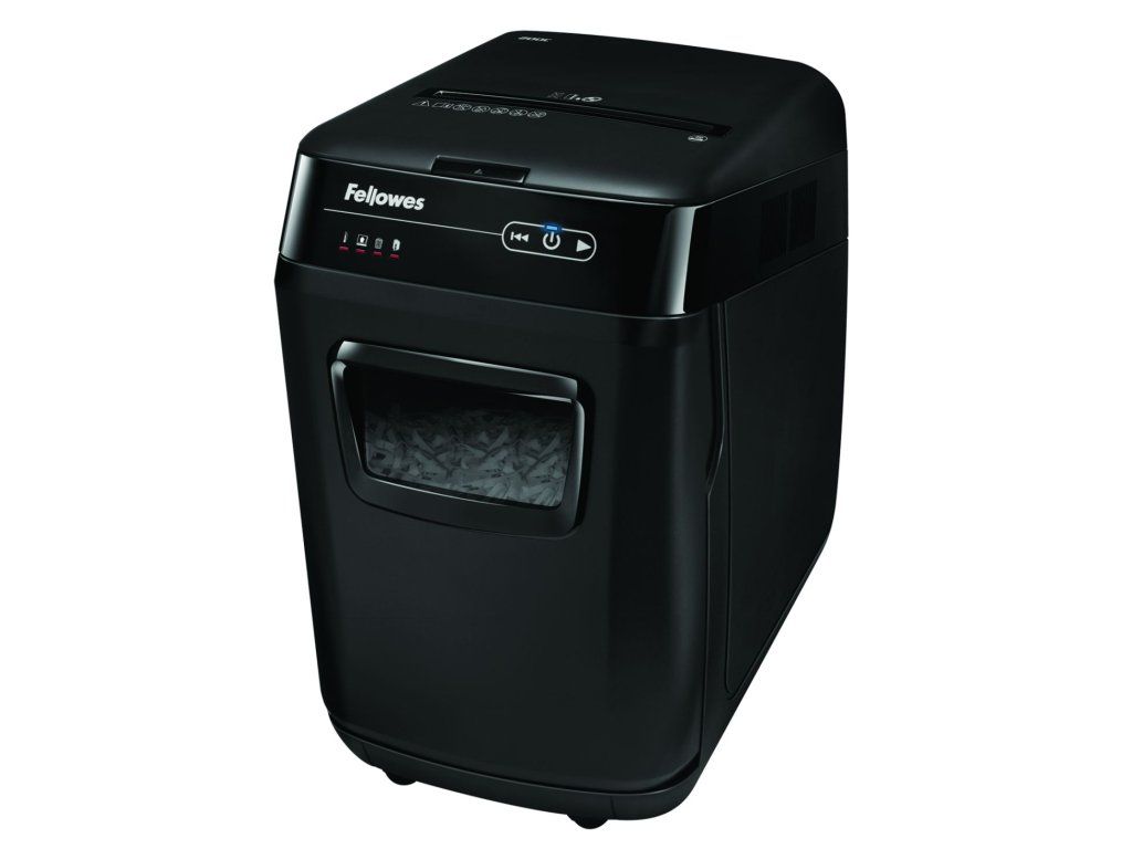 Skartování nikdy nebylo snazší. Revoluční automatická skartovačka značky Fellowes Vás o tom přesvědčí. Jen nalož, zapni a běž. Tento automatický skartovací stroj Vám umožní věnovat se prospěšnějším kancelářským činnostem, nežli je opakované postávání u běžného skartovače. Zařízení je schopno na jeden pracovní cyklus při automatickém podávání skartovat až 200 listů 70g papíru v křížovém řezu 4×38 mm. Skartovač je vybaven vstupní štěrbinou pro ruční podání až 10-ti listů papíru. Výkonný řezací mechanismus zpracuje při automatickém podávání sešívačkou sešité papíry (až 20 sponkou sešitých listů 70g papíru), sponky (až 20 spojených listů). Při manuálním podávání i kreditní karty, CD/DVD. Ovládání je zajištěno prostřednictvím dotykového panelu s LED podsvětlením. Samozřejmostí je indikace přehřátí, otevřeného zásobníku, plného odpadního koše i případného kolizního stavu (pokud je na vstupu nežádoucí obsah). Délka nepřetržitého pracovního cyklu 12 min. Automatický ochranný systém proti přehřátí. Podstava s kolečky pro pojezd. Řezné nože ze speciální tvrzené oceli, silný motor a kovové převodové součásti předurčují AutoMax pro dlouhodobé a bezproblémové využití. Předurčen primárně pro „open office''. Vysouvací odpadová nádoba uvnitř s odolným papírovým košem, pro snadnou manipulaci. Skartovač je vybaven řadou pokročilých funkcí, které usnadňují jeho obsluhu a užívání: System „accufeed“ – automatické podávání papíru pro střední zátěž, šetří čas strávený podáváním papíru Funkce „SilentShred“ výrazně minimalizuje zatížení hlukem při skartování Auto-Reverse™ – zajistí přerušení skartace a zpětný chod při záseku Funkce „Sleep MODE“ – automatické vypnutí stroje po 2 minutách nečinnosti PARAMETRY: • Automatický skartovač: ano • Typ řezu: křížový řez • Velikost odpadu po skartaci: 4 x 38 mm • Kapacita skartace z automatického zásobníku: 200 listů / 70g papíru • Doba pro skartaci plného zásobníku: 5 min • Skartovací kapacita: 10 listů / 70g papíru • Objem koše: 32 L • Objem koše ve skartovaném papíru: 200 listů / 80g papíru • Doporučený počet uživatelů: 1 - 3 osob • Vstupní šířka: 230 mm • Skartuje také: CD | karty | spony: ano | ano | ano • Hlučnost: 65 dB • Certifikováno NBÚ: ano • Stupeň utajení dle NBÚ: NNI 1 • Stupeň utajení dle DIN 66399: P - 4 • Doba nepřetržité skartace: 12 min • Příkon: 460 W • Napájení: 230 V • Rozměry (Š x V x H): 345mm x 545mm x 515mm • Hmotnost: 15.5 kg