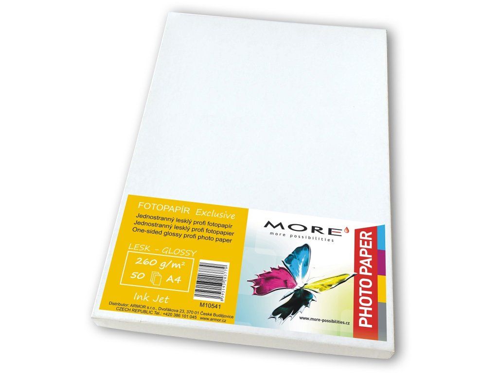Fotopapír Exclusive 260g/m2, glossy ,Jednostranný fotopapír s vysoce lesklou povrchovou úpravou. MORE Fotopapír Exclusive 260g/m2, glossy, 50 listů str.,Ink JetDodatočné parametre