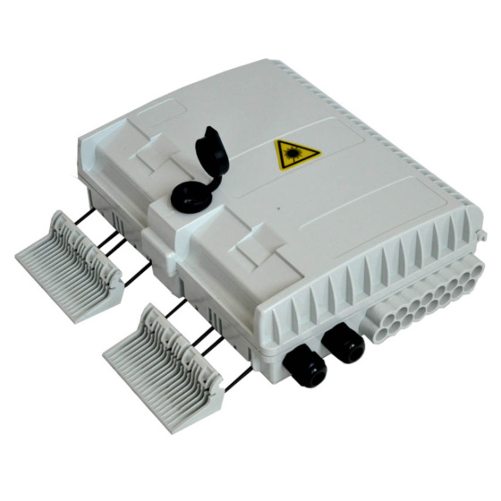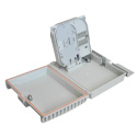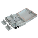 FTTH Box velký, 16xSC, LC, E2000, plastFTTH Box vhodný k: *provaření optických kabelů *vyvedení 16 vláken na SC simlex, LC duplex nebo E2000 simplex spojky. *kazeta pro 2x12 vláken *vyrobeno z kvalitního plastu odolávajícího UV záření *odolnost IP65 *možnost montáže na zeď i sloup, vhodné do venkovního prostředí *2x vstup *16x výstup *osazeno kazetou Rozměry: 320x235x95 mm
