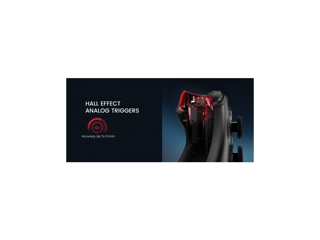 Magnetické spúšťače s Hallovým efektom: Vďaka využitiu precízne vyladenej technológie z ovládača G7 HE poskytujú analógové spúšťače s Hallovým efektom konzistentný chod a hĺbku. Či už zrýchľujete alebo brzdíte v závodných hrách, tieto spúšte poskytujú spoľahlivé, plynulé a presné ovládanie. V prípade FPS a akčných hier vyžadujúcich citlivú spätnú väzbu môžu hráči tiež prepnúť režim spúšte na "Hair trigger" podržaním tlačidiel M+LT/RT na 2 sekundy.
