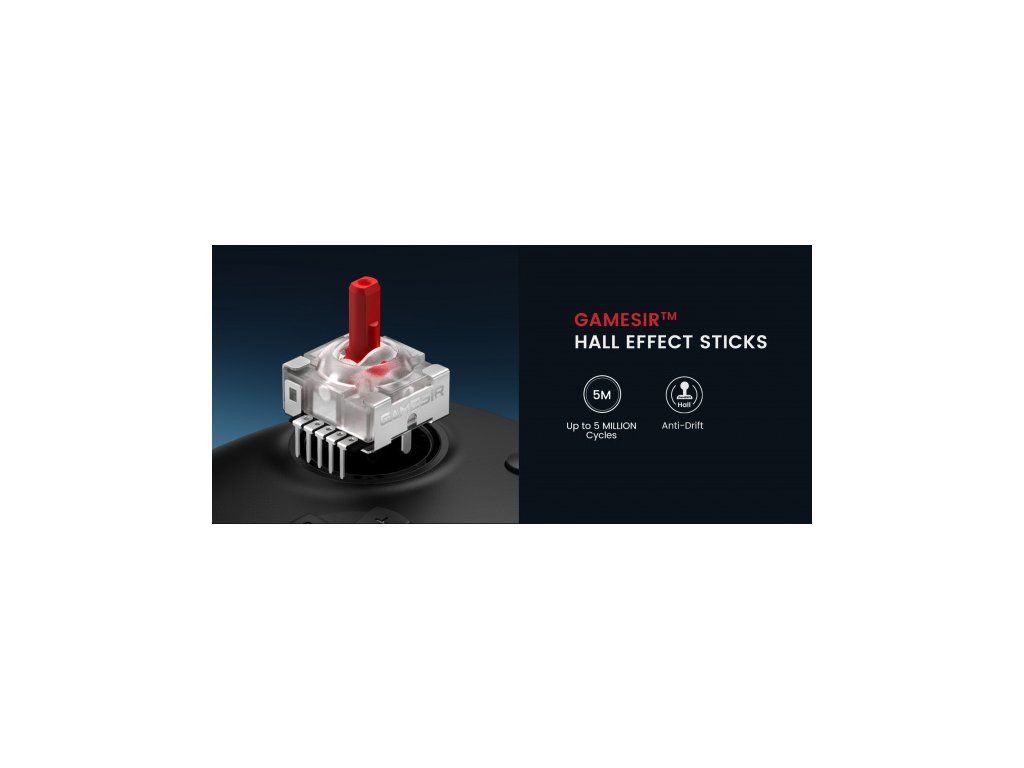 Joysticky s Hallovým efektom GameSir™: Joysticky s Hallovým efektom GameSir™ poskytujú odolnú životnosť až 5 miliónov cyklov, presnú a citlivú spätnú väzbu a navyše krúžky odolné voči opotrebovaniu, ktoré sú odolné voči driftu.