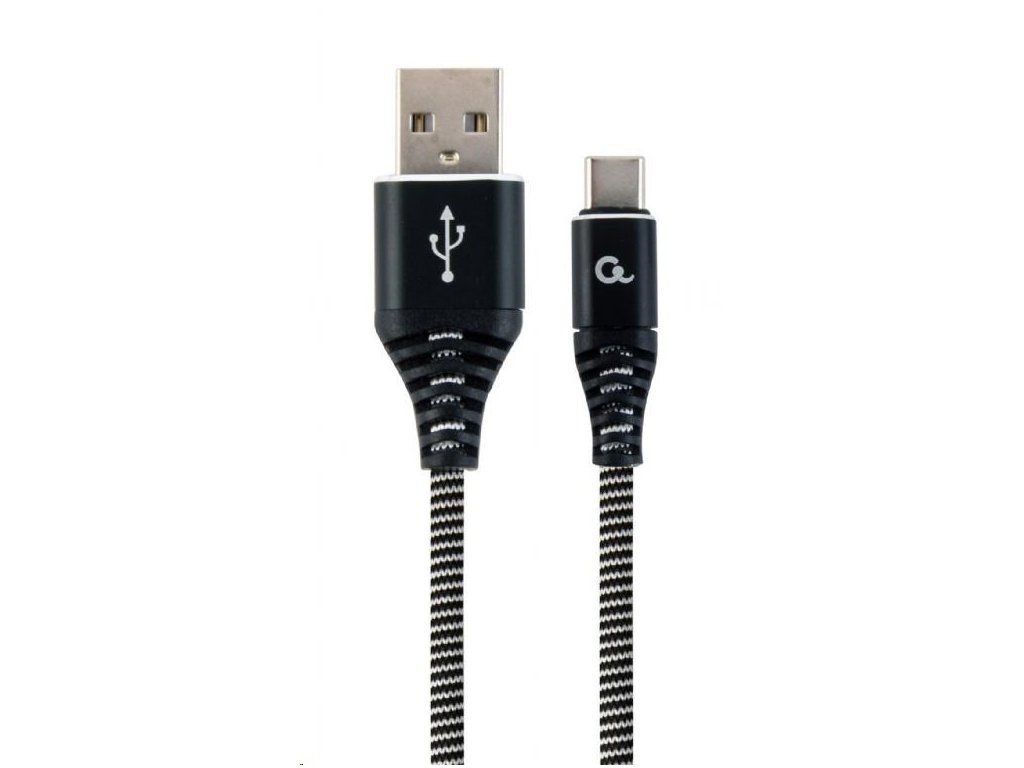 GEMBIRD CABLEXPERT USB 2.0 Kábel AM na typ C (AM/CM), 2 m, opletený, čiernobiely, blister, PREMIUM KVALITA