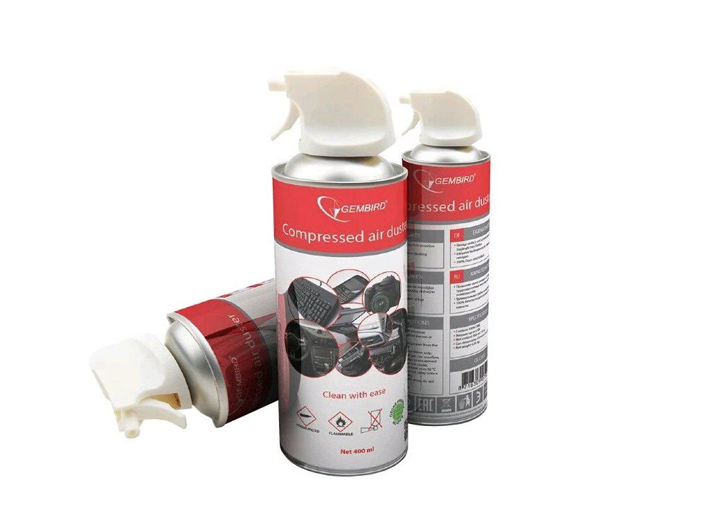 Gembird čistící stlačený plyn Vyčistěte všechna těžko dostupná či choulostivá místa ve vaší elektronice, pomocí tohoto stlačeného plynu společnosti Gembird. Součástí je prodlužovací trubička pro precizní čištění. Objem je 400 ml. Látka je vysoce hořlavá.
