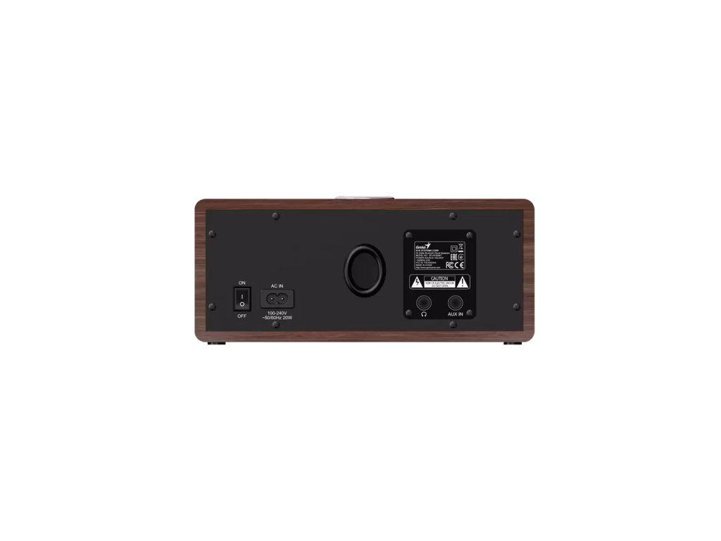 GENIUS SP-HF505BT - tmavé dřevo *Jednodílné stereo Bluetooth dřevěné reproduktory pro poslech z mobilních telefonů, tabletů, PC nebo audio zařízení *Celkový výstupní výkon 20 wattů (RMS) *Dva 1,5'' výškové reproduktory pro čisté výšky (jeden pro každý kanál) *Dva 3'' basové reproduktory pro rozšířený střední a hluboký bas (jeden pro každý kanál) *Bezdrátová technologie Bluetooth 5.3 *Vstup AUX (Line in) pro připojení dalších audio zařízení *Sluchátkový výstup pro připojení sluchátek
