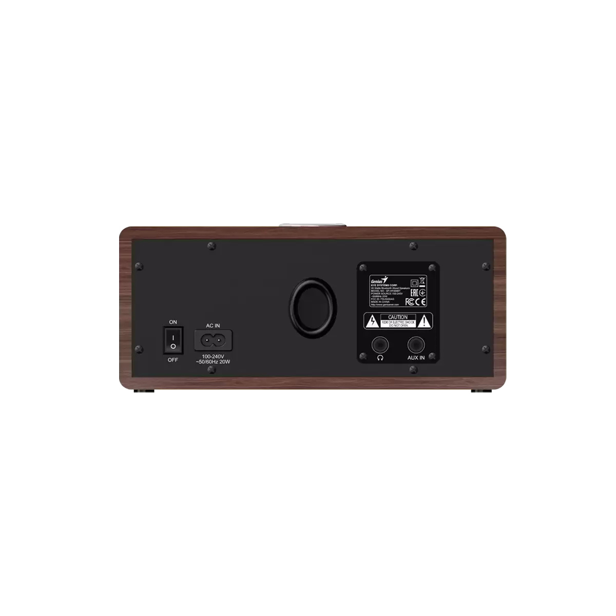 GENIUS SP-HF505BT - tmavé dřevo *Jednodílné stereo Bluetooth dřevěné reproduktory pro poslech z mobilních telefonů, tabletů, PC nebo audio zařízení *Celkový výstupní výkon 20 wattů (RMS) *Dva 1,5'' výškové reproduktory pro čisté výšky (jeden pro každý kanál) *Dva 3'' basové reproduktory pro rozšířený střední a hluboký bas (jeden pro každý kanál) *Bezdrátová technologie Bluetooth 5.3 *Vstup AUX (Line in) pro připojení dalších audio zařízení *Sluchátkový výstup pro připojení sluchátek