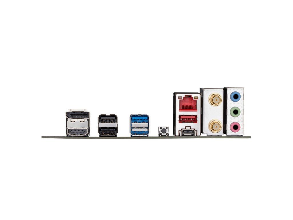 Porty na zadním panelu: * 1x USB Typ-C® - podpora USB 3.2 Gen 1 * 1x USB 3.2 Gen 2 (červený) * 1x USB 3.2 Gen 1 * 3x USB 2.0/1.1 * 1x DisplayPort * 1x HDMI * 2x anténní konektor SMA (2T2R) * 1x RJ-45 * 3x audio jack * 1x Q-Flash Plus tlačítko