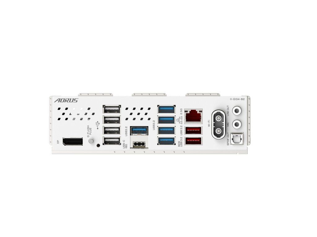 Porty na zadním panelu: * 1x tlačítko Q-Flash Plus * 2x anténní konektor SMA (2T2R) * 1x DisplayPort * 1x USB typ C®, s podporou USB 3.2 Gen 2 * 2x USB 3.2 Gen 2 typ A (červený) * 5x USB3.2 Gen 1 * 4x USB 2.0/1.1 * 1x RJ-45 * 2x audio jack * 1x optický S/PDIF out