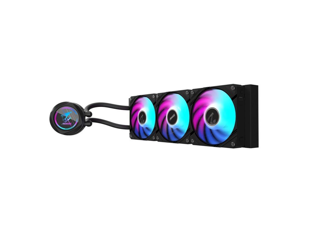 GIGABYTE AORUS WATERFORCE II 360 * konstrukce vodního bloku otočná o 330° * ventilátor EZ-Chain Mag * osvětlení ventilátoru ARGB lze synchronizovat s jinými zařízeními
