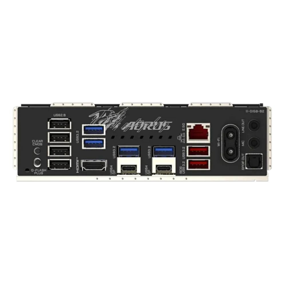 Porty na zadním panelu: , *1x tlačítko Clear CMOS *1x tlačítko Q-Flash Plus *1x ,HDMI *2x ,USB4® Type-C® ,(DisplayPort) *2x USB 3.2 Gen 2 Type-A (červený) *4x ,USB 3.2 Gen 1 *4x USB 2.0/1.1 *1x ,RJ-45 *2x ,anténní konektor (2T2R) *2x audio jack *1x optický konektor S/PDIF out