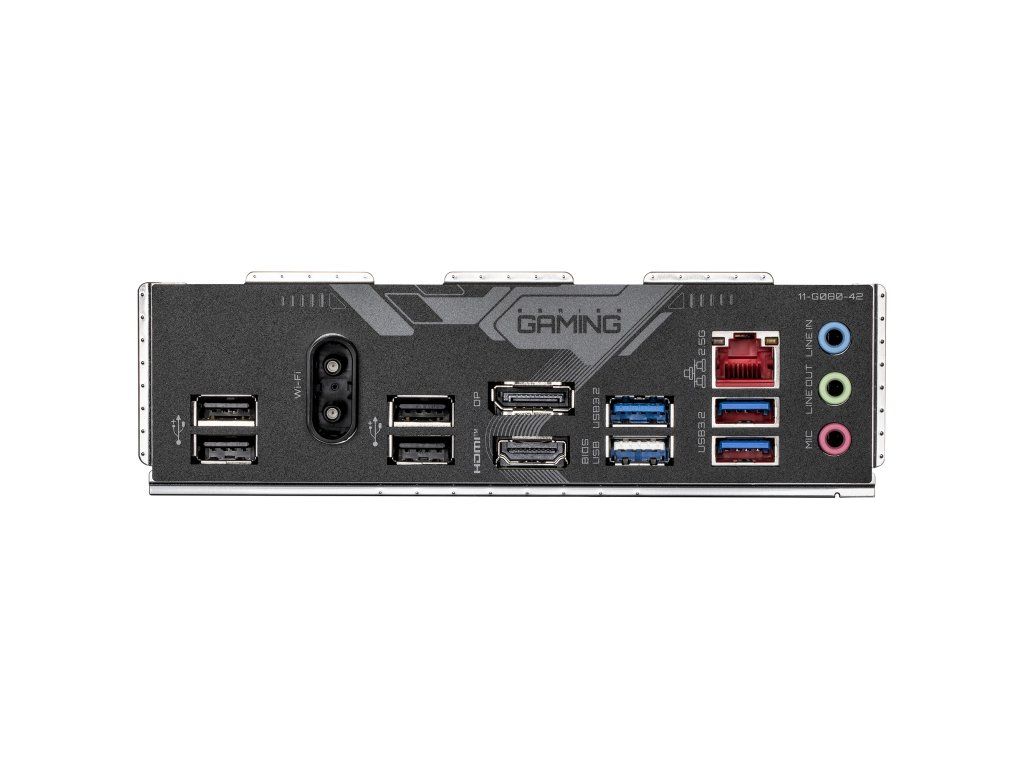 Porty na zadním panelu: * 3x USB 3.2 Gen 1 * 5x USB 2.0/1.1 * 1x DisplayPort * 1x HDMI 2.0 * 1x RJ-45 * 3x audio konektor * 2x anténní konektor (2T2R)