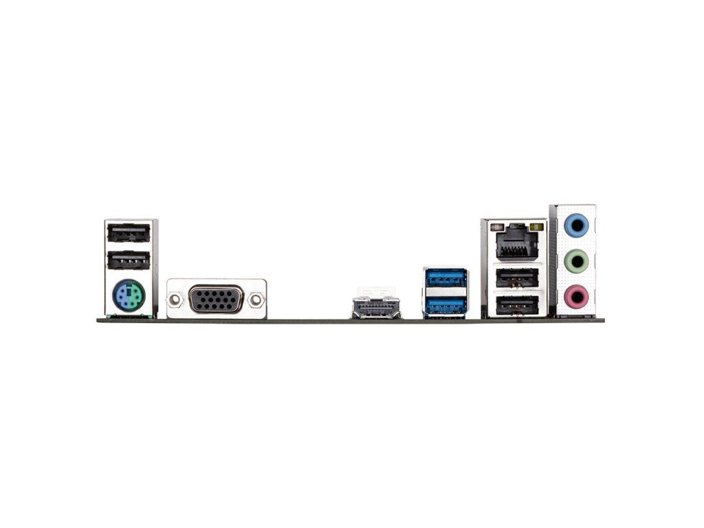Porty na zadním panelu: * 1x PS/2 klávesnice/myš * 1x D-Sub * 1x HDMI * 2x USB 3.2 Gen 1 * 4x USB 2.0/1.1 * 1x RJ-45 * 3x audio jack