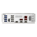 Porty na zadním panelu: * 2x USB4 Typu-C * 1x USB Typu-C 3.2 Gen 2 * 2x USB 3.2 Gen 2 (červený) * 4x USB 3.2 Gen 1 * 4x USB 2.0/1.1 * 1x HDMI * 2x anténní konektor (2T2R) * 1x RJ-45 * 1x optický konektor S/PDIF out * 2x audio jack