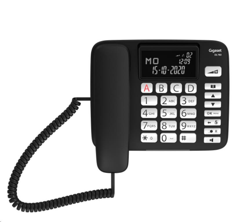 - 4 programovateľné tlačidlá priamej voľby (A-D) pre dôležité telefónne čísla