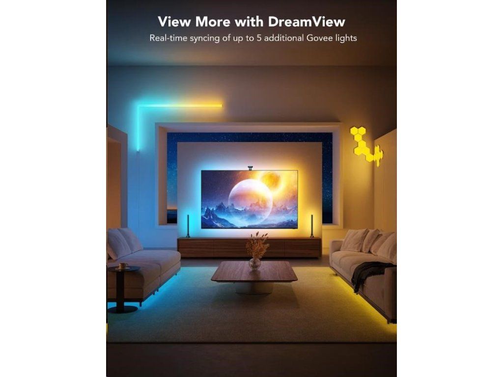 Špeciálna duálna kamera s pokročilou technológiou ColorMatch inteligentne rozoznáva a zachytáva farby na obrazovke vašej televízie alebo monitora. Na základe tejto farebnej analýzy automaticky vyhodnotí a nastaví ideálne podsvietenie. Užívajte si synchronizáciu farieb bez oneskorenia, bez potreby HDMI kábla alebo obmedzení streamovacími službami. Spolu možno spárovať až päť Govee zariadení.