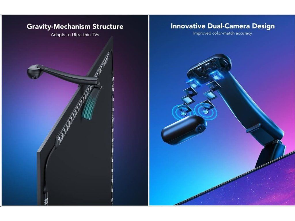 Inovatívny dizajn kamery so dvoma šošovkami zachytáva obsah presnejšie a vďaka tomu synchronizuje farby z obrazovky s väčšou presnosťou. Montážna konštrukcia umožňuje jednoduchšiu inštaláciu na hornú časť televíznej obrazovky, vrátane ultra tenkých TV.