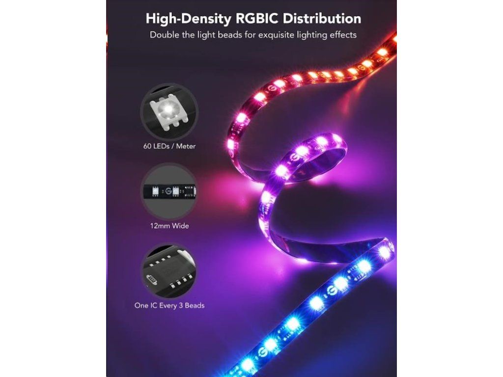Tí, ktorí majú radi viacero farieb, si zamilujú funkciu segmentového ovládania farieb, ktorá umožňuje technológia RGBIC. Prispôsobte si farbu každej sekcie pásu podľa seba a vytvorte tak jedinečné osvetlenie, ktoré bude presne podľa vašich predstáv, vkusu a nálady. Nastavenie Farby a intenzity svetla nastavíte jednoducho pomocou aplikácie Govee Home. Navyše získate prístup k funkcii časovača, DIY farbám, režimu videa, synchronizácii hudby a režimom scény.