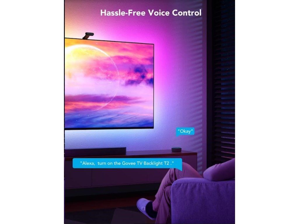 Vytvorte si ideálnu filmovú alebo hernú atmosféru pomocou jednoduchých hlasových príkazov. Svetlá sú kompatibilné s asistentmi Alexa, Google Assistant a Siri. WiFi modul je zabudovaný v kamere, iba kamera je pripojená k ovládaciemu boxu. Teraz môžete Govee DreamView zapnúť/vypnúť, upraviť úroveň jasu alebo zmeniť ich farbu pomocou hlasových príkazov z pohodlia svojej pohovky alebo postele. Ovládanie svetiel je možné aj cez ovládaciu jednotku Control Box alebo cez aplikáciu na smartfóne alebo tablete.