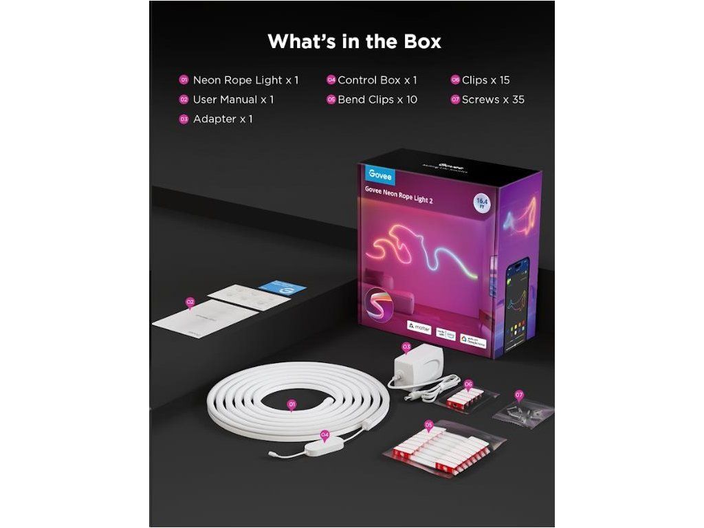 Inštalácia je veľmi jednoduchá pomocou samolepících klipov s 3M páskami. Nová generácia neonových pásikov je ešte ohybnejšia a tvarovanie je tak jednoduchšie. Vylepšené boli aj klipy a ponúkajú teraz pevnejšiu fixáciu vymysleného tvaru. Pre možnosť maximálnej istoty sú v balení aj šroubky. Govee Neon 2 je vhodné pre všetky miestnosti a fantázii sa medze nekladú!